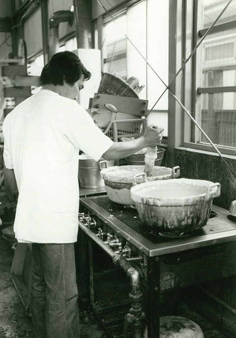 当時の店は現在の店舗の筋向いの神明神社の裏手にありました。ここには地元の文人・石野雲嶺が住んでおり、その梅園に咲いた梅の形を象った煎餅を焼いたのが始まりです。